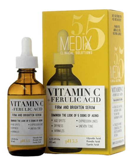 – This Medix 5.5 Vitamin C Body Cream infused with Turmeric helps refine the look of aging skin and uneven skin tone. Vitamin C helps promote an even skin tone, while also helping stimulate collection production to help improve skin elasticity + firmness. Advanced Brightening Vitamin C Body & Face Lotion helps refine the look of discolored skin, age spots, freckles, sun damage from sunspots, rough skin texture, hyperpigmentation, & acne-scars.